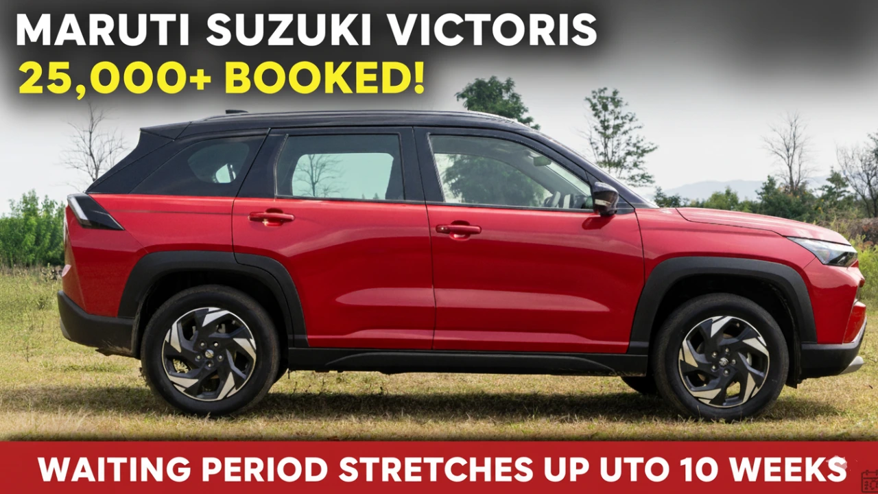 The Maruti Suzuki Victoris has crossed 25,000 bookings within weeks of launch, and that surge is stretching waiting periods to roughly 10 weeks for popular variants even as deliveries begin through the Arena network.